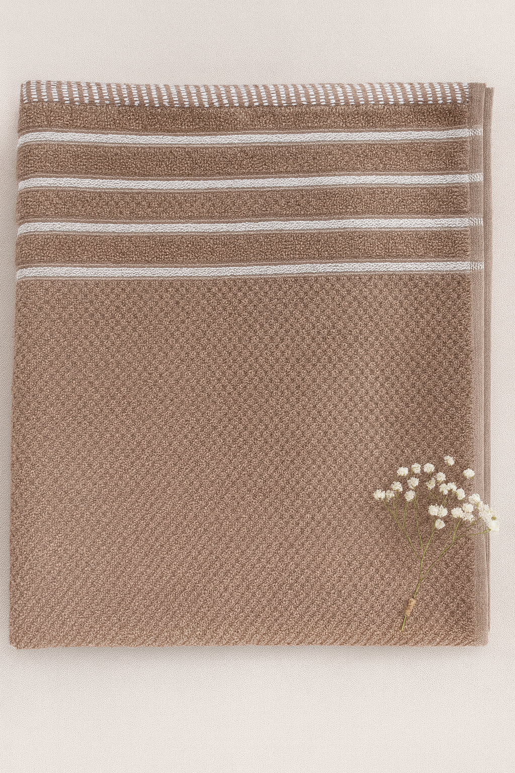 Introducing the Warm Taupe Textured Bath Towel, designed for those who love soft, earthy tones in their home. Its rich taupe shade paired with a subtle textured weave offers a calming, premium look. The clean white stripe detailing adds a modern finish, while the towel’s absorbent, gentle fabric ensures a luxurious everyday experience. Stylish, durable, and perfect for any bathroom aesthetic.